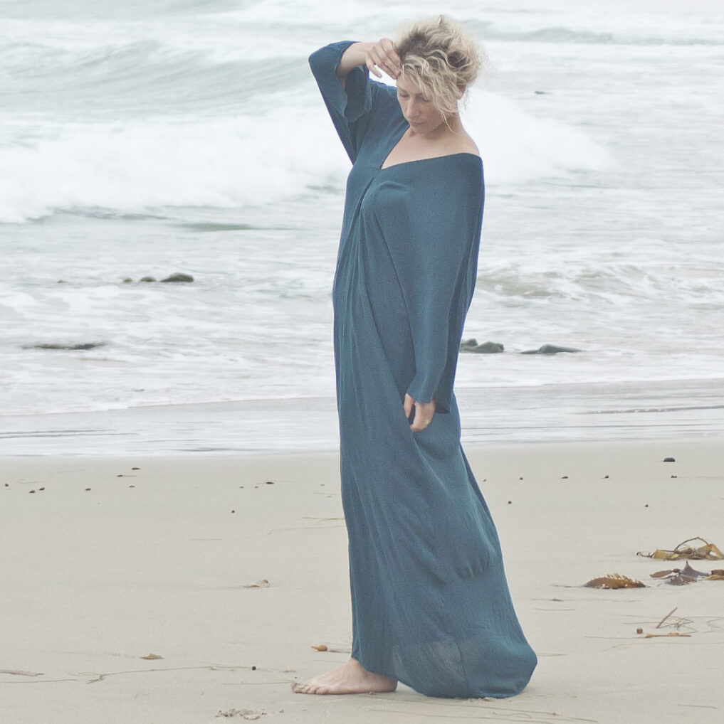Romantic Kimono Dress, Long Silk Dress, Night Out Dolman Dress. Size M-L