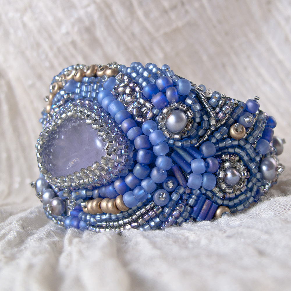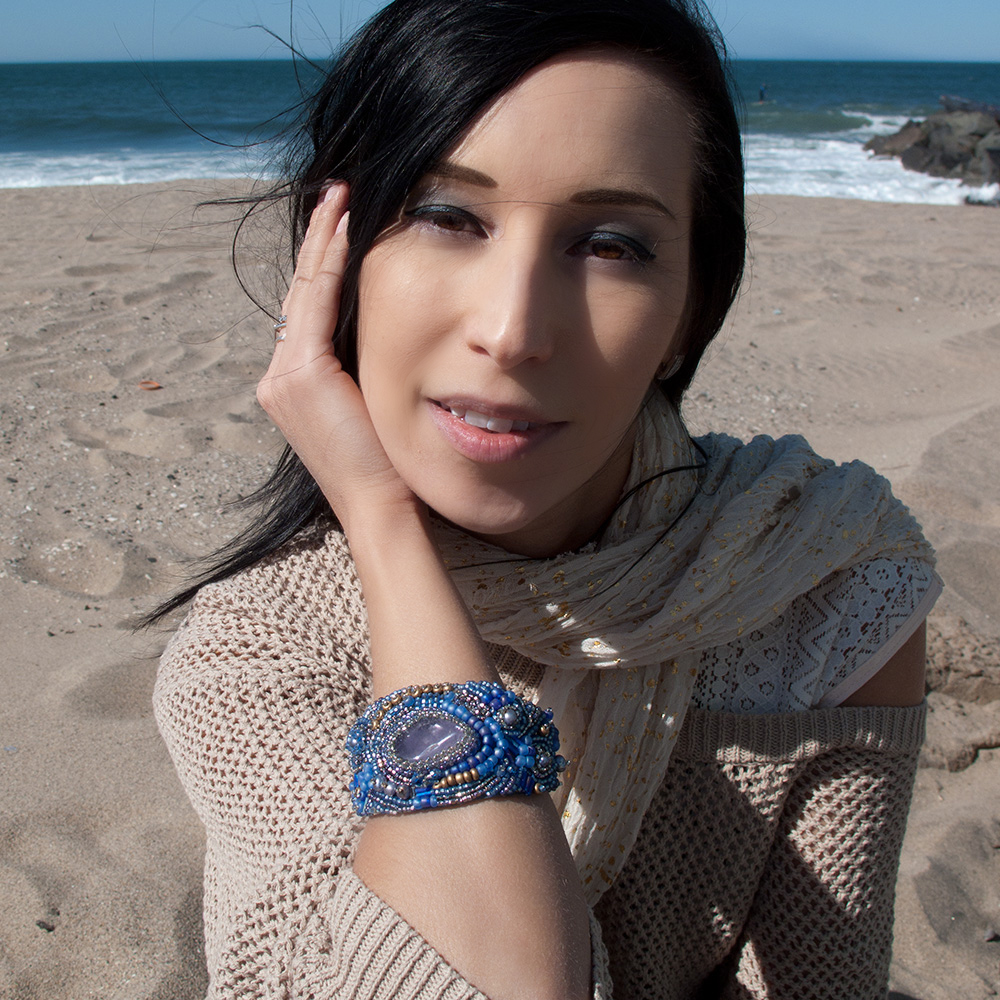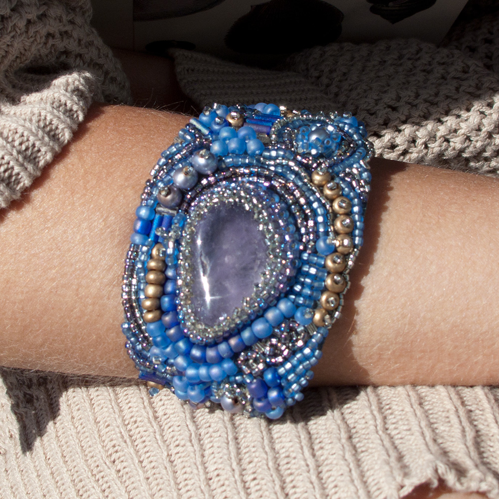 This Bracelet is truly absolutely amazing! It looks so gorgeous and rich on a wrist, turns heads, and gets lots of compliments. It will remind you wonderful ocean sunrise. It is made with a big amethyst, some purple freshwater pearls, and lots and lots of Japanese seed beads of purple and gold. It will be good for wrists 6.5-7.5″.