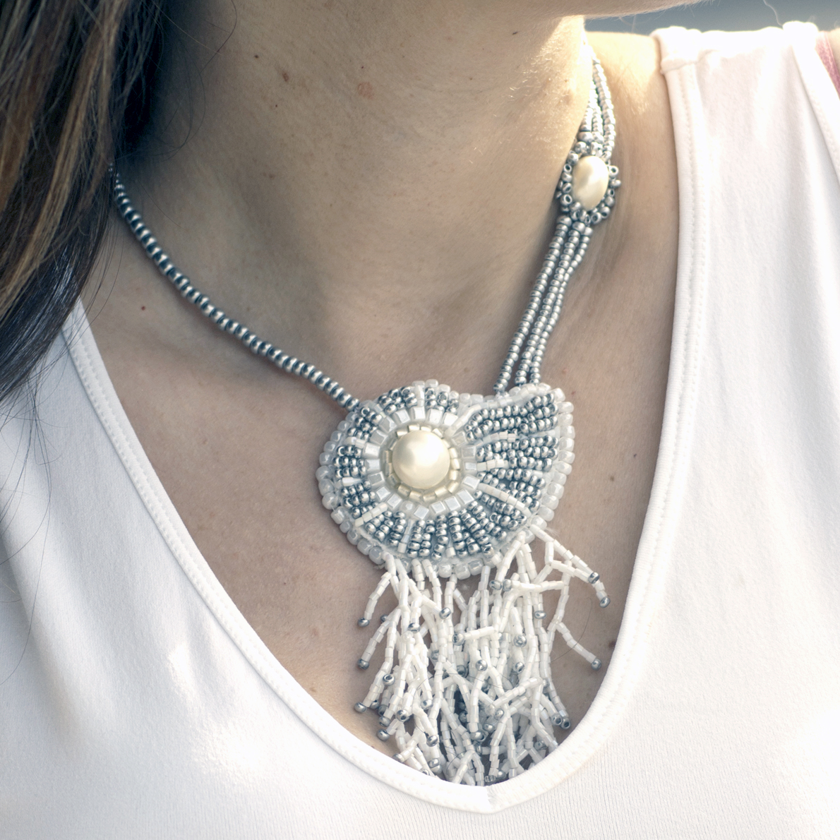 Indulge in the timeless elegance of our “Pearlescent Shell Beaded Necklace.” Crafted with exquisite grey and white beads reminiscent of shimmering pearls and delicate shells, this necklace exudes understated sophistication. Measuring approximately 3×4 inches, each bead is carefully selected and strung together to create a stunning visual effect that catches the eye. The neutral color palette ensures versatility, allowing this necklace to effortlessly complement a wide range of outfits, from casual ensembles to formal attire. Whether worn as a standalone statement piece or layered with other necklaces for a personalized look, the “Pearlescent Shell Beaded Necklace” adds a touch of refined beauty to any outfit. Elevate your style with this exquisite accessory, perfect for both everyday wear and special occasions.