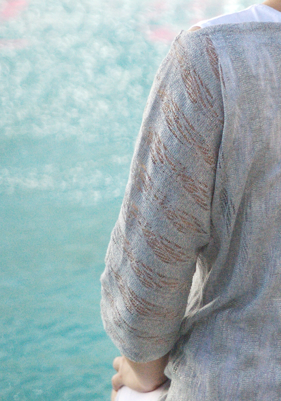 Silver Metallic Lace Off-Shoulder Kimono Net Sweater. Size M-L