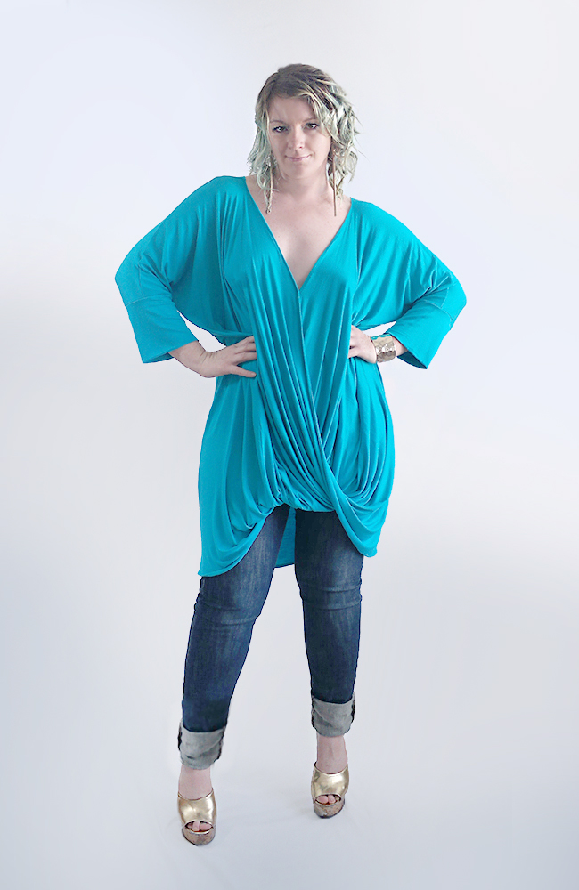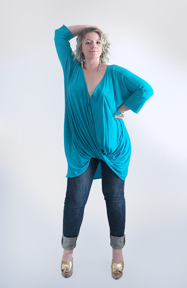 What a great sexy top! This will definitely turn heads. With jeans, leggings or a narrow skirt, – it will look amazing on any body type! V-neck and a dolman sleeve are so flattering! You will be noticed!