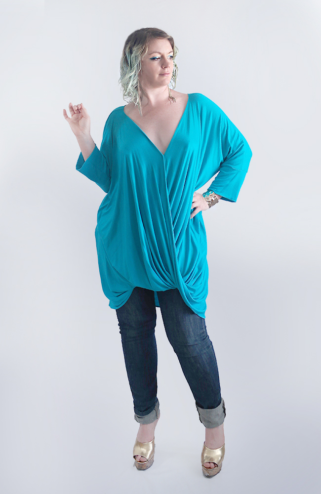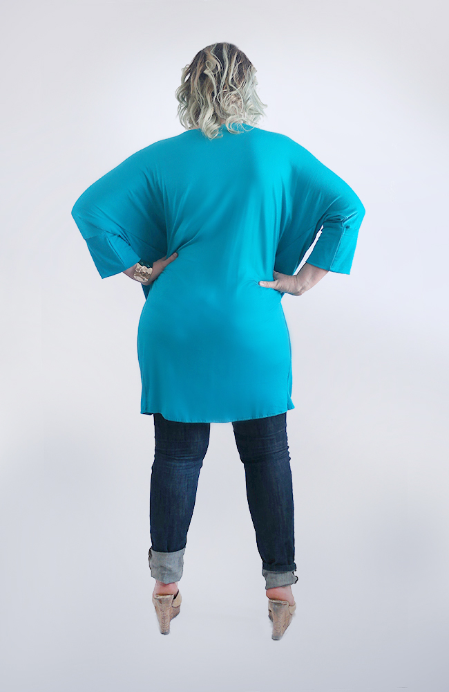 Plunging Neck Turquoise Kimono Top. ONE Size (M-XXL)