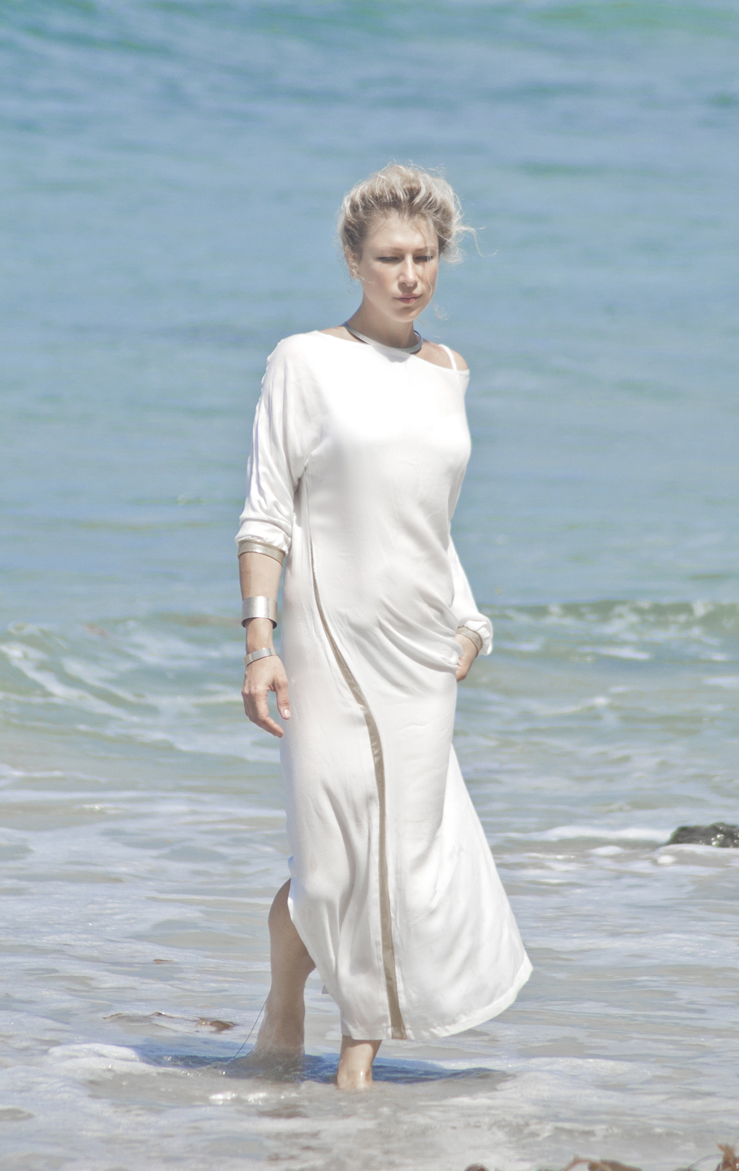 What a beautiful kimono dress! It's so light and breathable. Even though it looks covered, you will enjoy its fresh touch on a hot day. Besides, it shows off your curves in the most flattering way! Dress it up or down. Wear it with heels for a night out or put on some flipflops and head to the beach. You will always feel special in this fantastic chic white and gold dress.