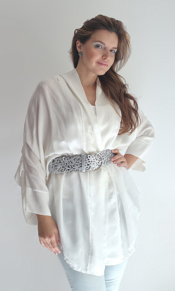 White Lightweight Silk Kimono Jacket. Size M-XL